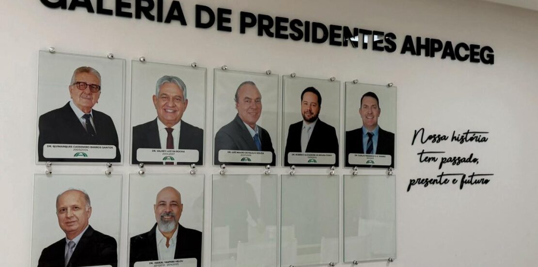 Instalada na sede da entidade, no Setor Sul, a galeria reúne, em ordem cronológica, os sete presidentes que conduziram a Ahpaceg até 2025, quando foi eleito o atual presidente, Renato Daher.